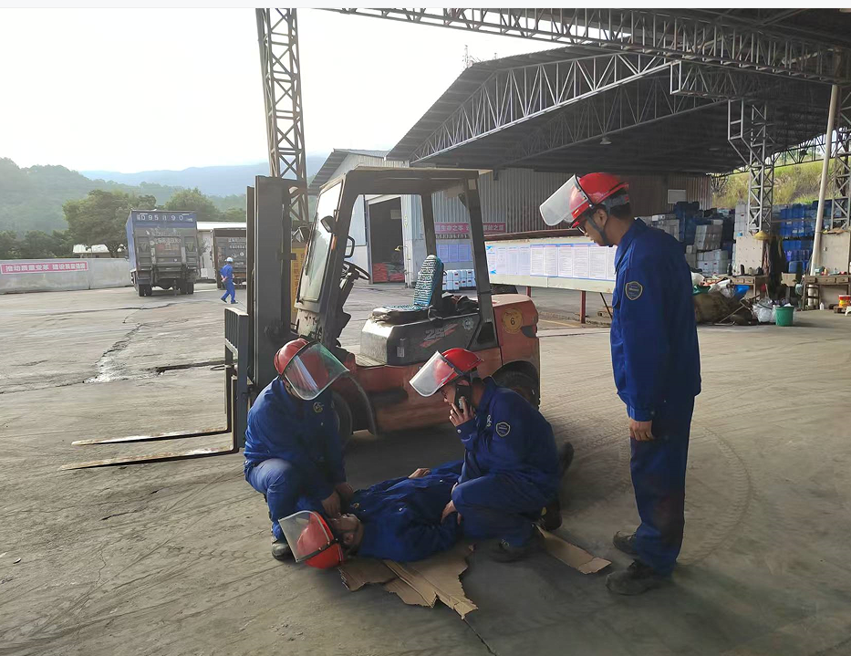 叉車司機(jī)王根立即停止作業(yè),并大喊:“撞人了,撞人了”,周邊同事聽到后,迅速過來幫助受傷人員躺平,并上報(bào)車間主任,車間主任接報(bào)后,立即組織救援人員趕赴現(xiàn)場(chǎng),查看受傷人員傷勢(shì)情況,查看到傷勢(shì)比較嚴(yán)重,立即組織人員進(jìn)行簡(jiǎn)單包扎處理,簡(jiǎn)單處理后,使用擔(dān)架抬傷員到公司車輛并送到醫(yī)院就診。